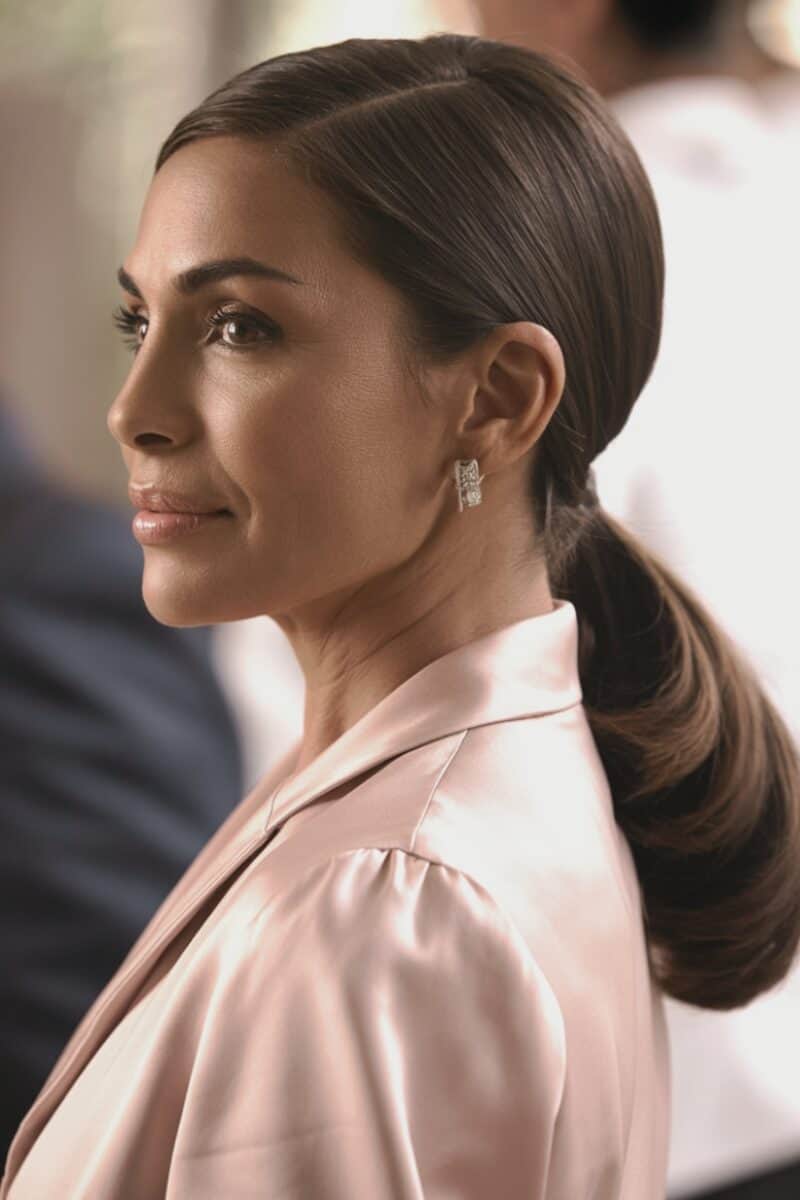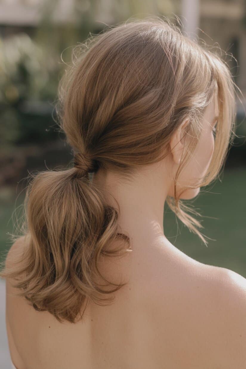 A low ponytail can look incredibly elegant when styled intentionally.