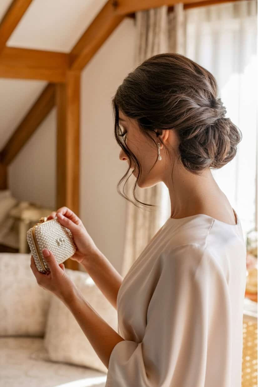 Small pearls, delicate clips, or fine pins add a refined touch without feeling bridal.