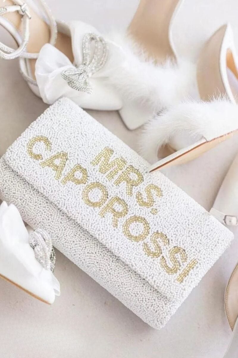 Bags are no longer an afterthought. 2026 brides are choosing sculptural clutches, pearl-covered minis and bouquet bags that combine florals with practicality.
