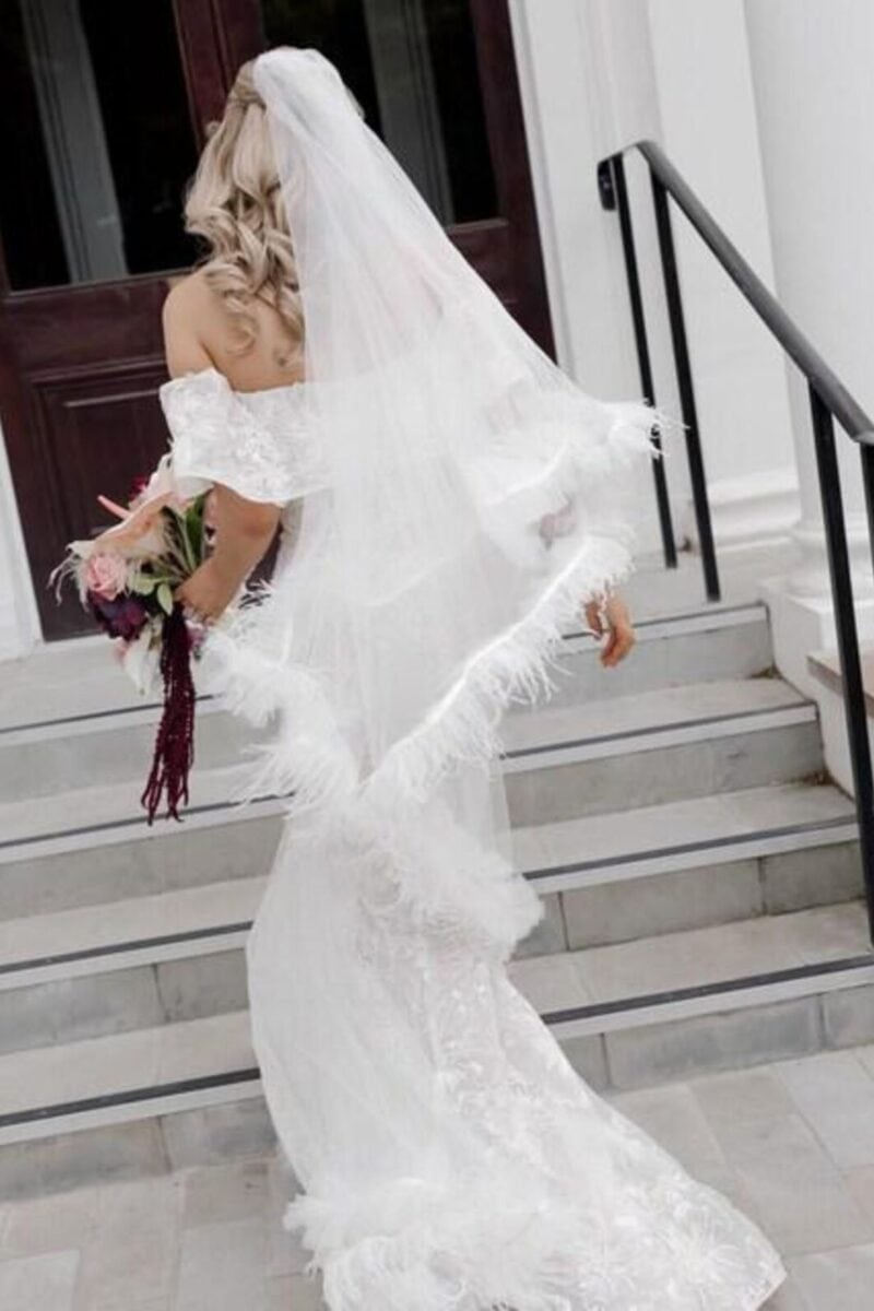 A layered cathedral veil works best with sleek gowns so the texture stays the focal point. A hooded veil gives a cinematic effect, especially for outdoor or winter ceremonies. Personalised embroidery makes these heirloom-worthy.