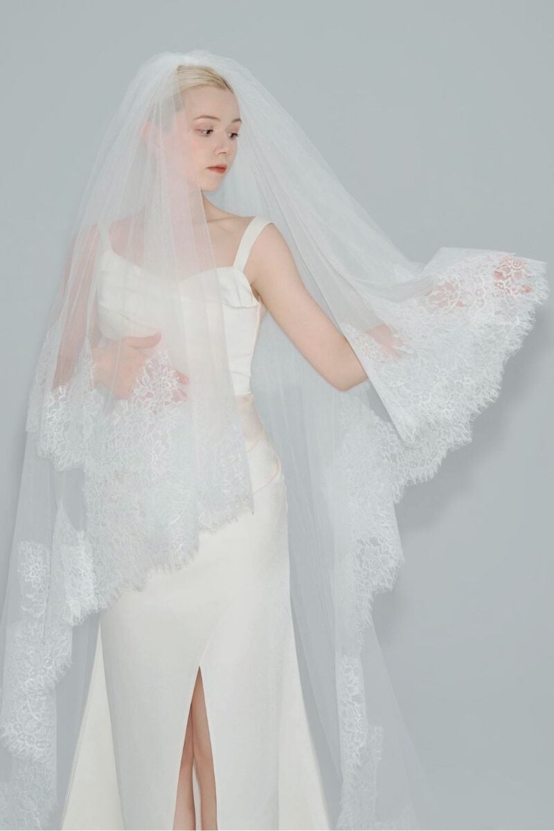 2026 veils are dramatic, sculptural and often heavily personalised. Expect sweeping cathedral lengths, layered tulle and embroidered details.