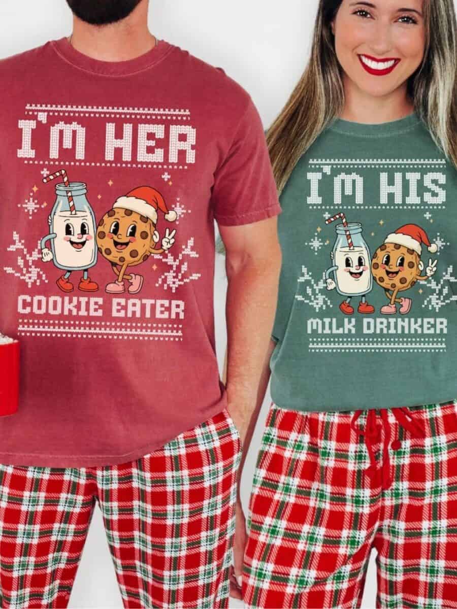 Matching couple pyjamas offer a cosy and adorable way for them to unwind together. It’s a fun and light hearted reminder of their special connection.