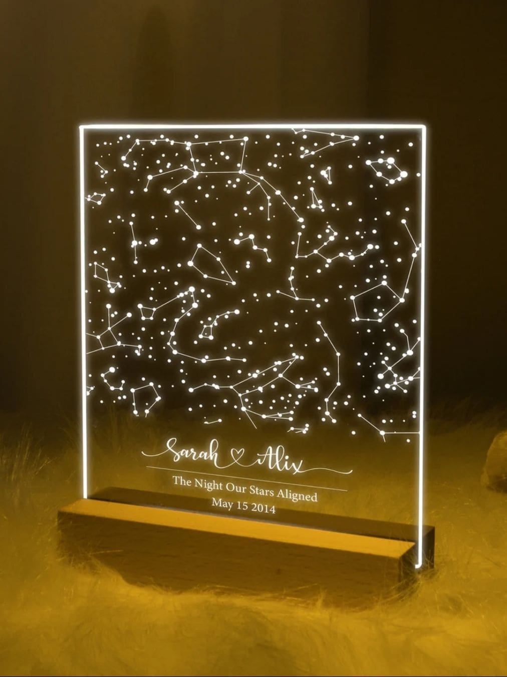 A customized star map beautifully captures the night sky’s appearance on a special date, like their anniversary. It’s a romantic and unique way to commemorate meaningful moments.
