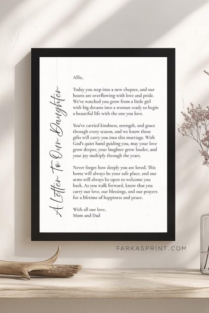 A letter to your daughter on her wedding day isn’t just a message, it’s a timeless gift from the heart that she’ll hold close for a lifetime. Here’s why it’s so meaningful: