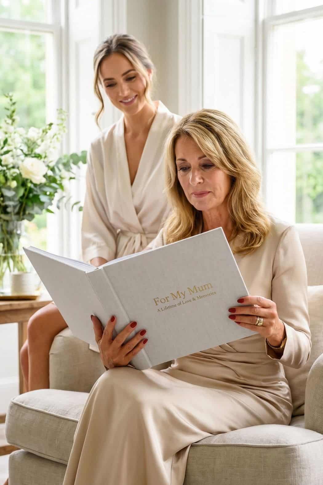 Etsy is the best place to find personalised linen books, custom guest books, and more unique formats like “letters to the bride” albums. If you want something more elevated, brands like Petite Keep offer heirloom-style memory books. For quicker or more budget-friendly options, Amazon and John Lewis are reliable for simple journals and photo albums.