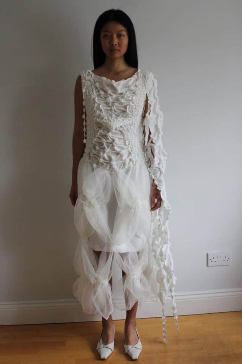 Róisín’s sculptural and textural approach flatters many body types because the fabric is built to fit and mould the wearer, offering a bespoke level of inclusivity.