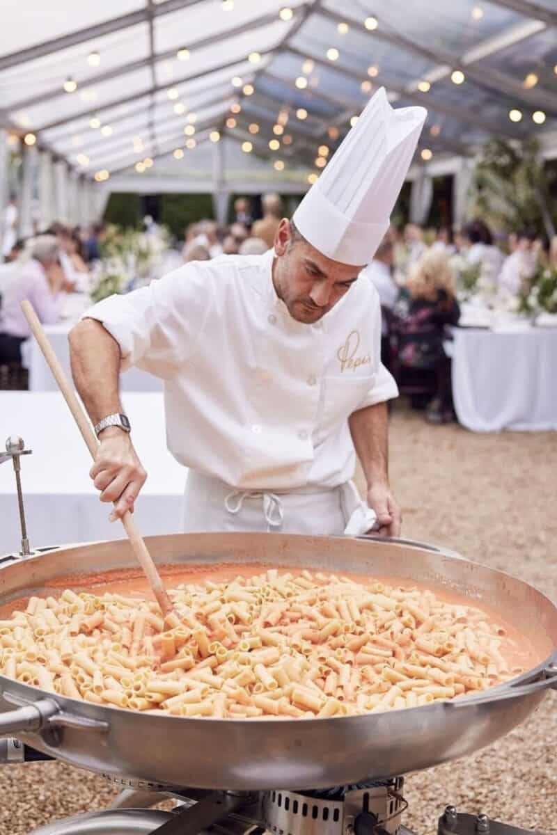 Pasta stations can work at different points in the day and the timing changes how you should plan it. As a main meal, pasta replaces a traditional plated dinner and needs to be filling, well staffed, and served at a natural pause in the day. As evening food, it becomes a comfort option that keeps energy levels up once dancing starts. As a late night option, smaller portions work better and simpler sauces tend to be more popular. Deciding when the pasta will be served early on helps shape portion sizes, menu choices, and whether you need chefs on hand throughout service.