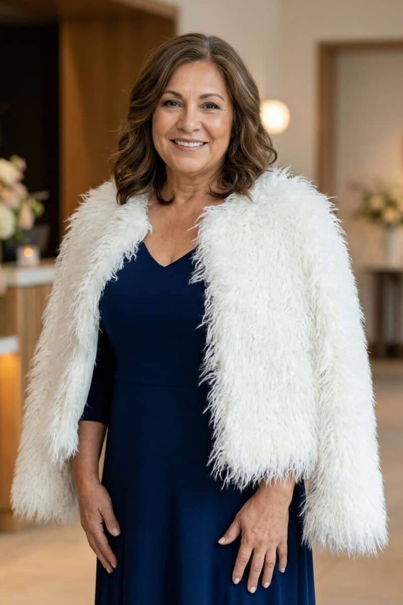 - Wraps & Boleros – A bolero or cropped wrap that ties at the tummy can provide coverage while still defining the waist. If tying at the front, go for a soft knot rather than a bulky bow to keep it flattering.