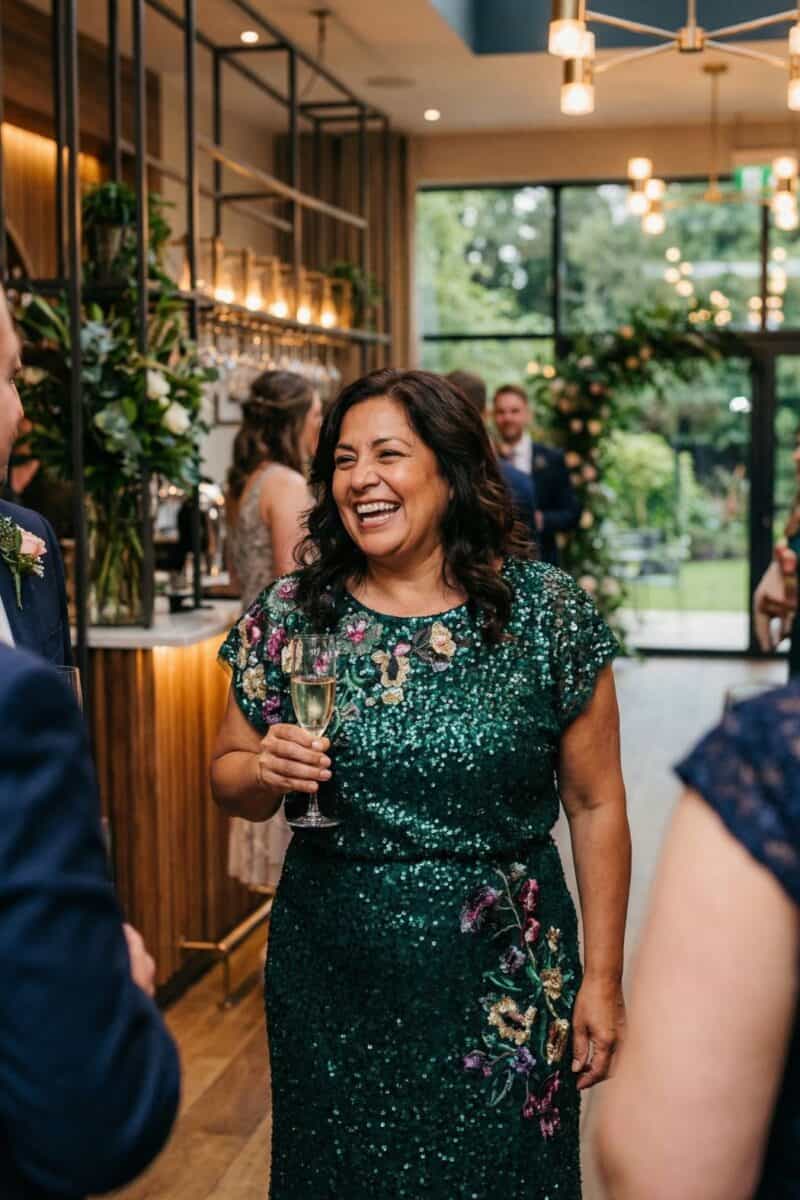 If you’re looking for a slimming effect, black is often the go-to option due to its universally flattering nature. That said, many mothers prefer to avoid black for a wedding, as it can feel too formal or somber for the occasion.