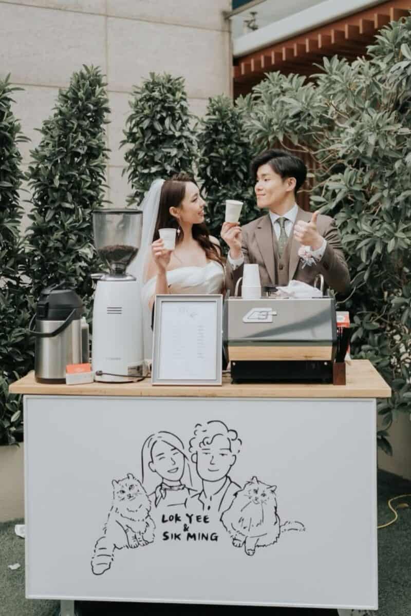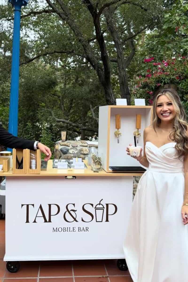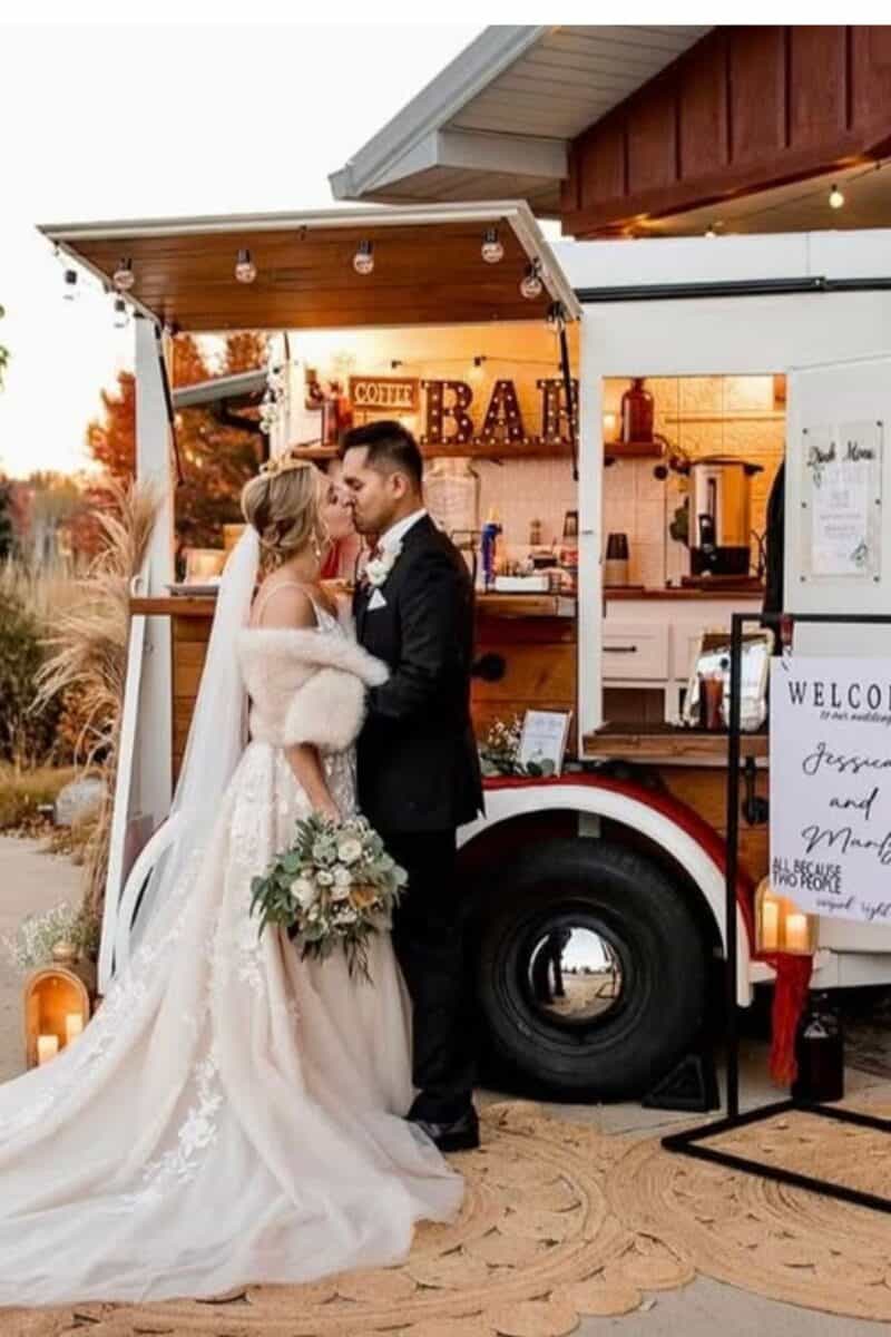 Coffee carts aren’t just for mornings anymore. Mobile coffee bars serving nitro cold brew, iced lattes, and affogatos provide a polished, non-alcoholic option that still feels intentional. They’re especially popular for evening receptions, winter weddings, or couples who want a refined alternative to more traditional drink stations.