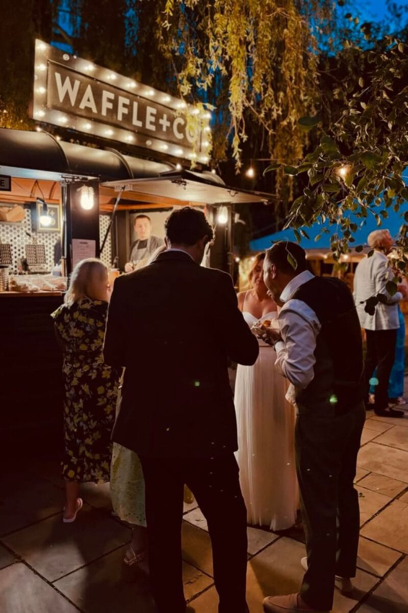 Late-night pizza trucks and fry or chip trolleys deliver comfort food with structure. Fries served from silver-service trolleys or pizza handed out fresh from a truck feel elevated without being formal. These options are practical, crowd-pleasing, and easy for guests to grab between songs.
