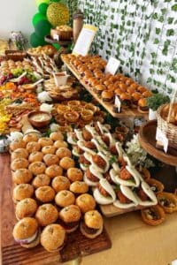 Food displays are increasingly designed to function as décor. Charcuterie boards arranged as visual art, hand-finished desserts, or colour-coordinated grazing tables create moments guests photograph before they eat. These setups blur the line between styling and catering.
