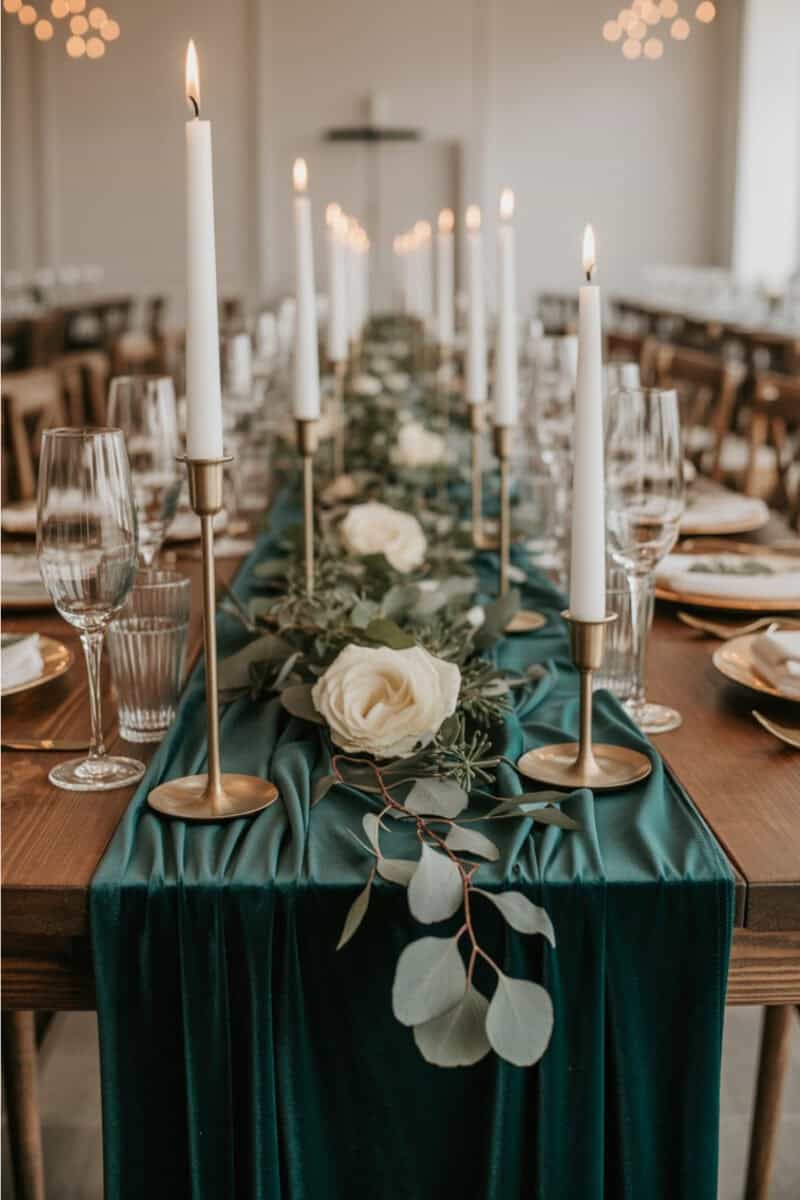8. Velvet Table Runners with Candles