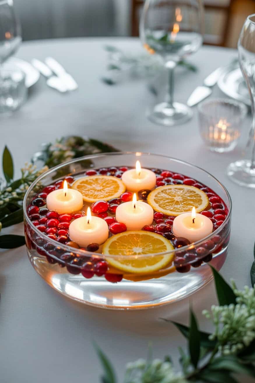 10. Floating Candles with Citrus & Cranberries